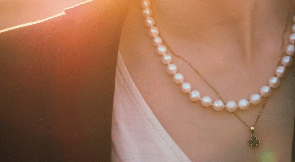 These pearls are not perfect—and that’s exactly the point. Baroque shapes, mixed materials, and layered styles are dominating the trend. You’ll find pearls combined with metals, leather cords, and even colorful beads, creating a unique fusion of classic and contemporary.